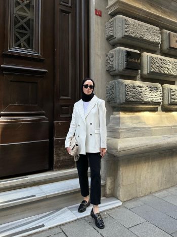 Beyaz Şal Yaka Keten Takım (Oversize Kalıp)