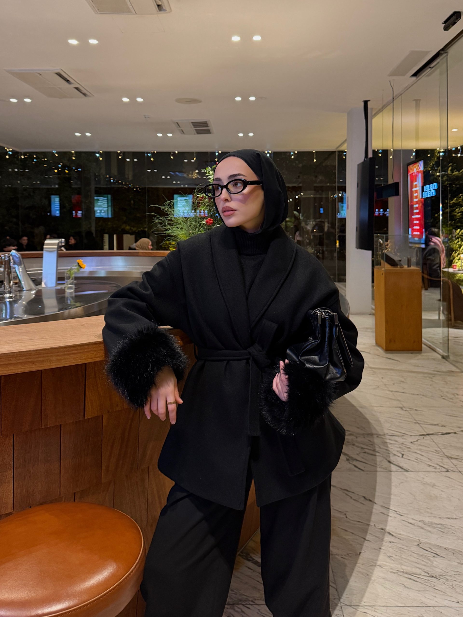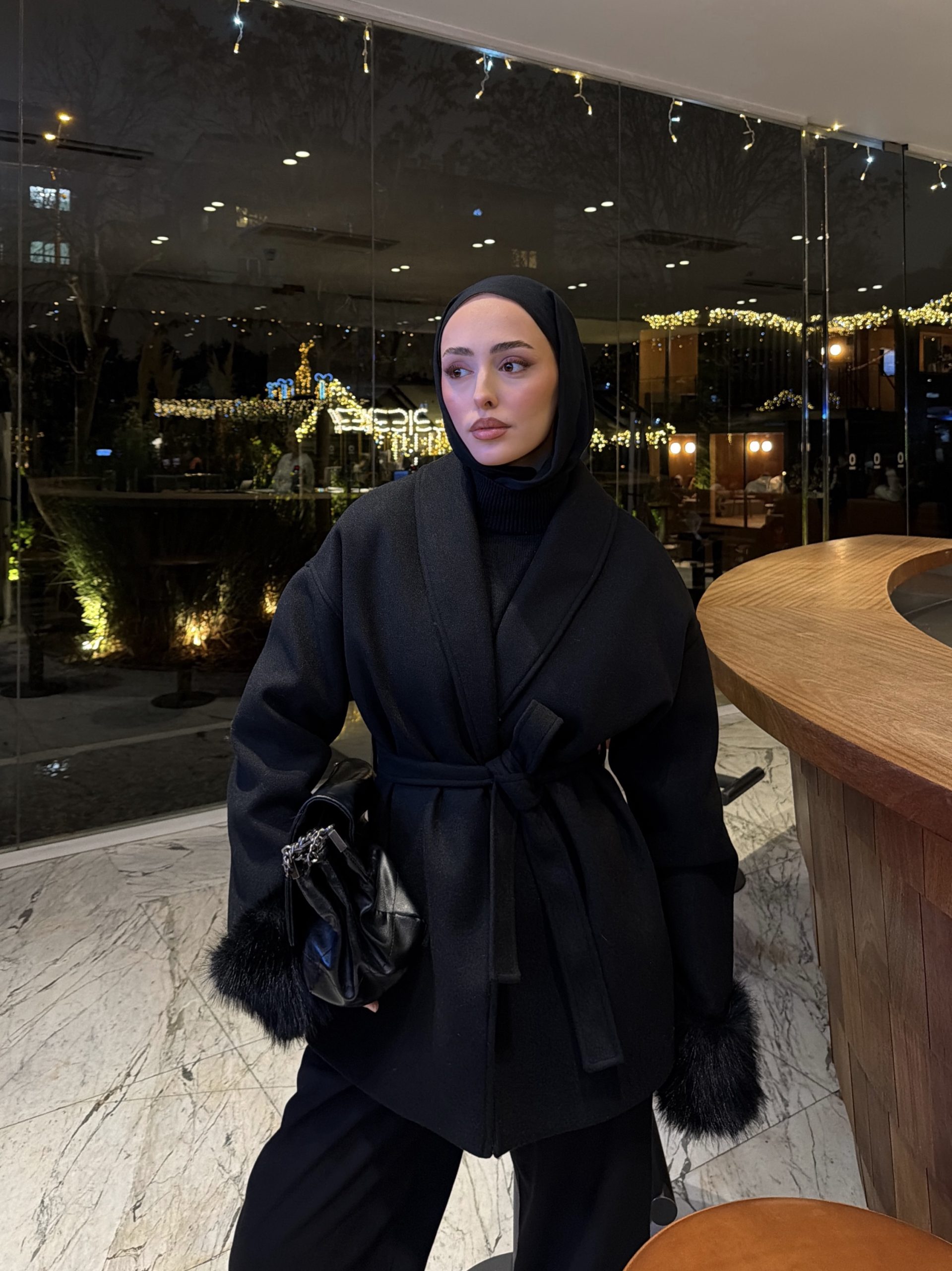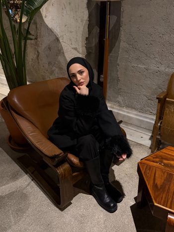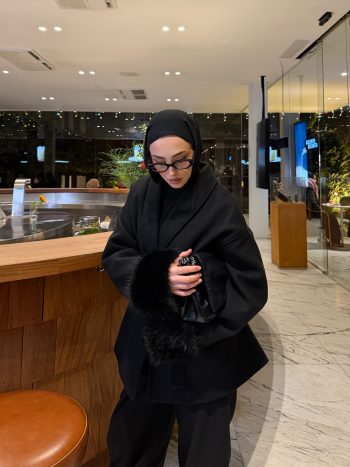Siyah Oversize Kürklü Kaban