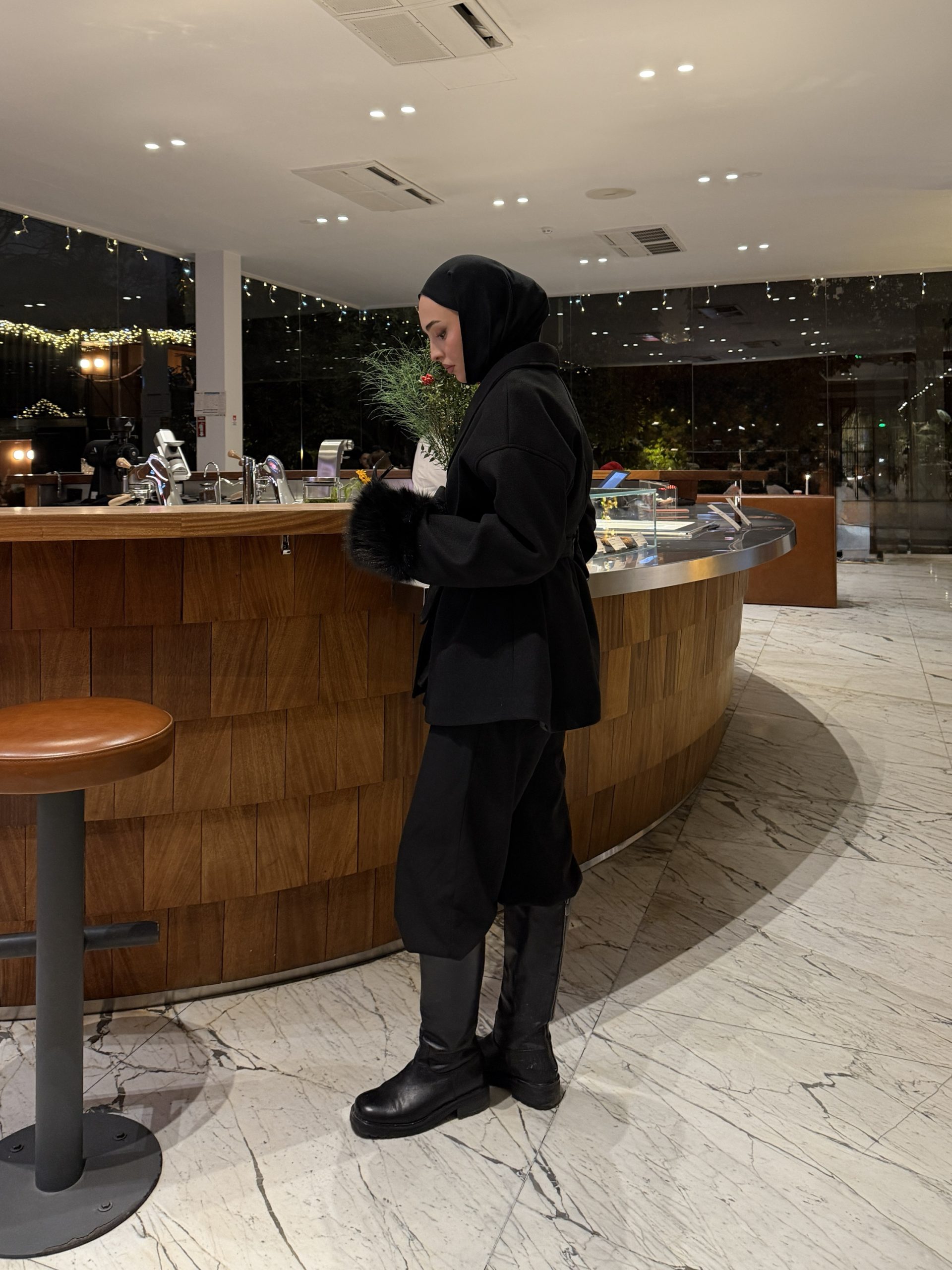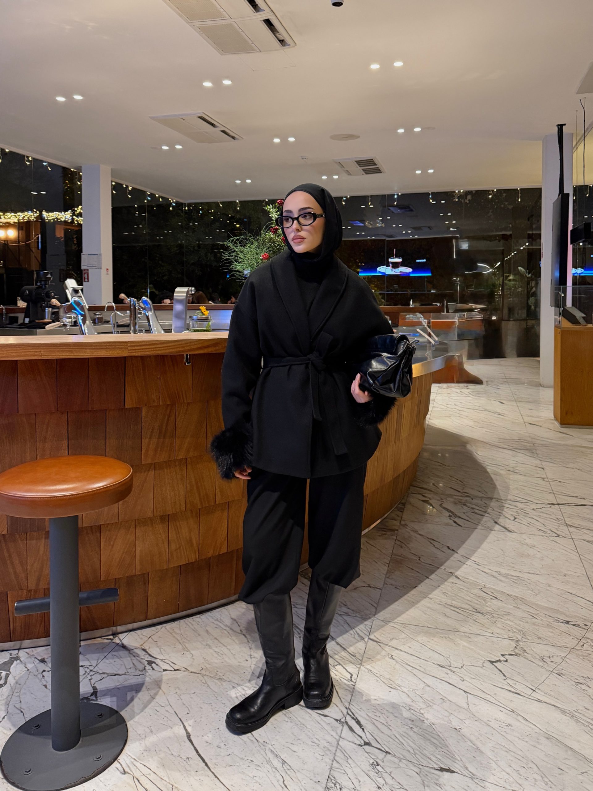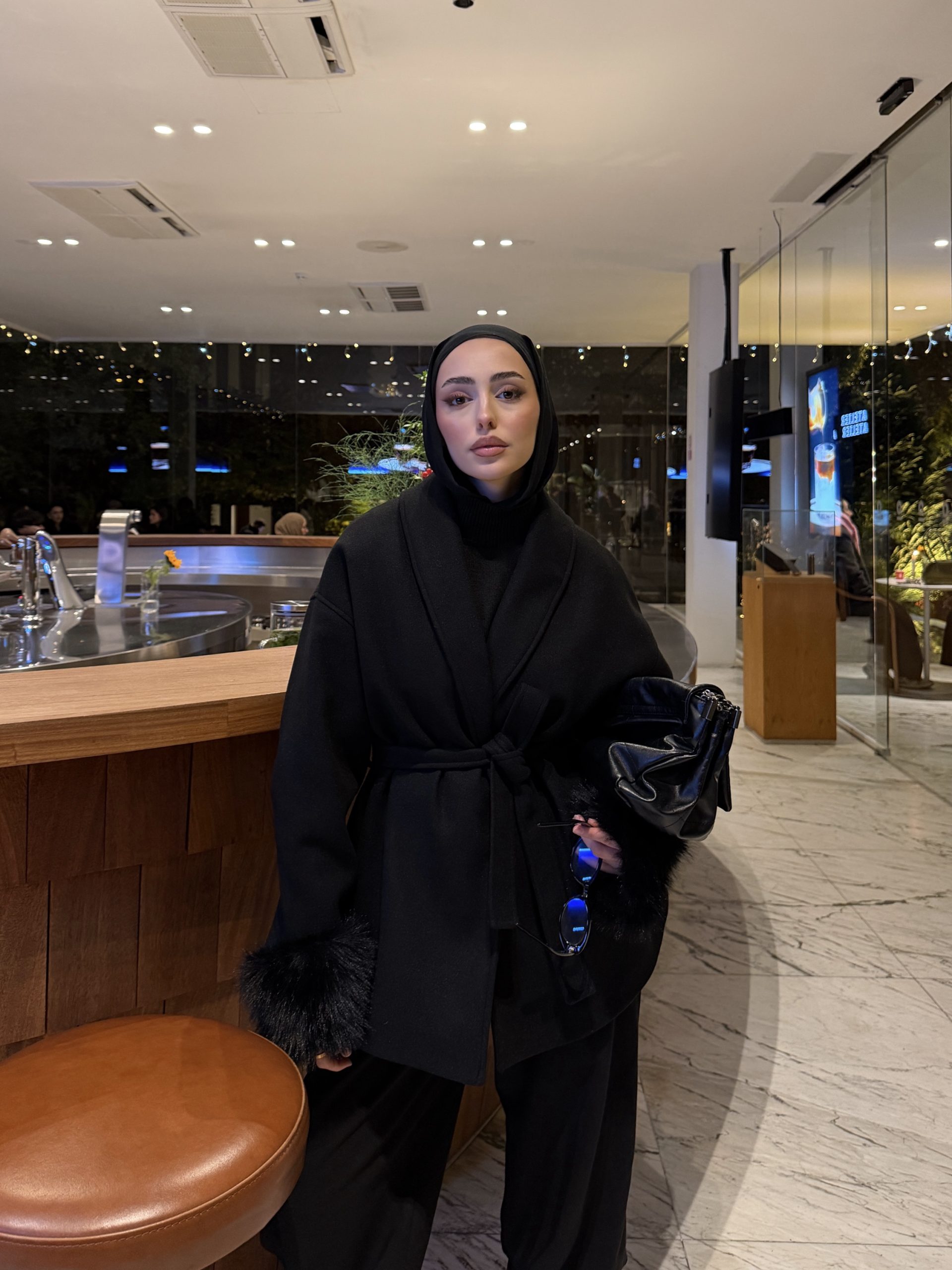 Siyah Oversize Kürklü Kaban