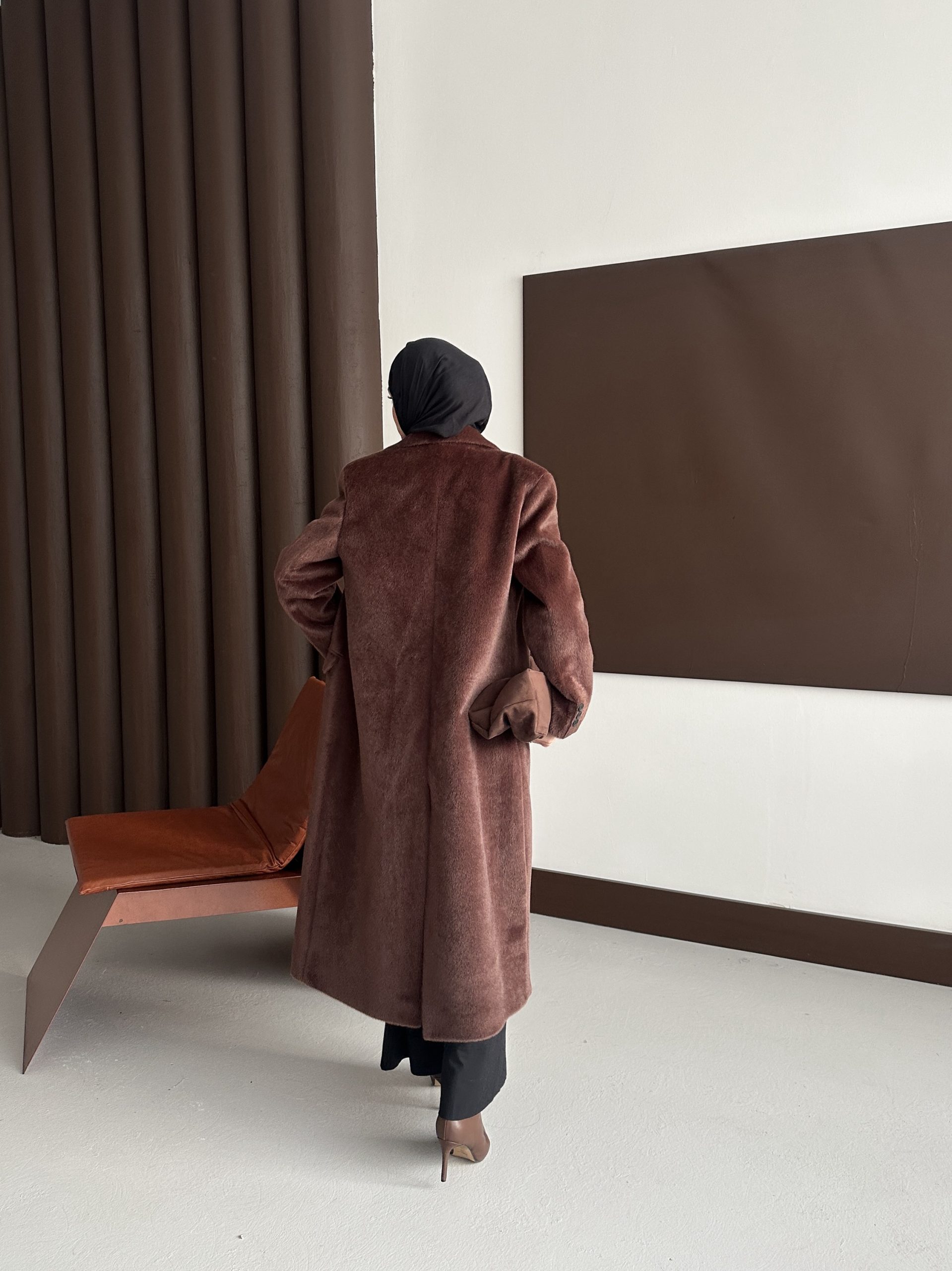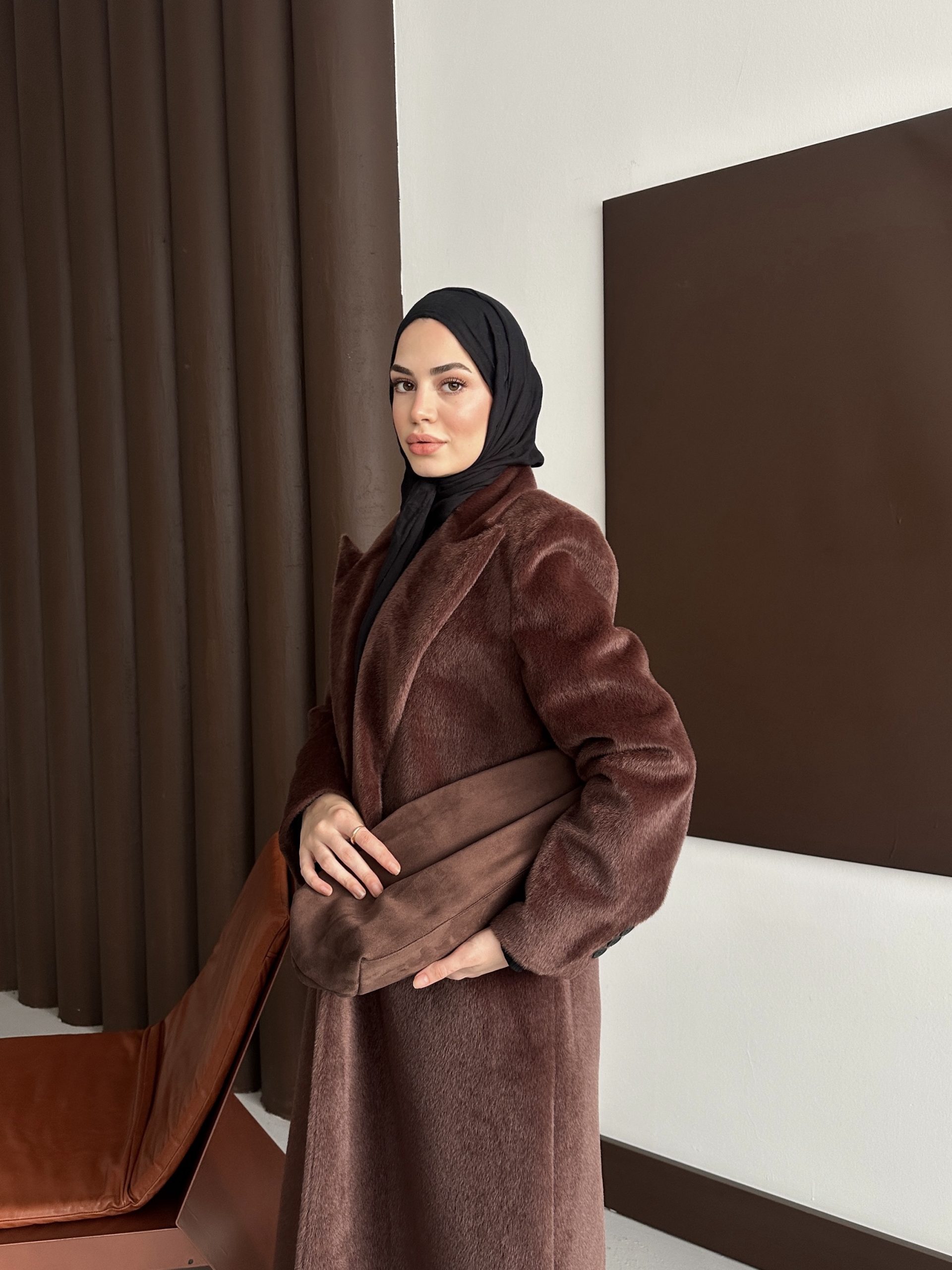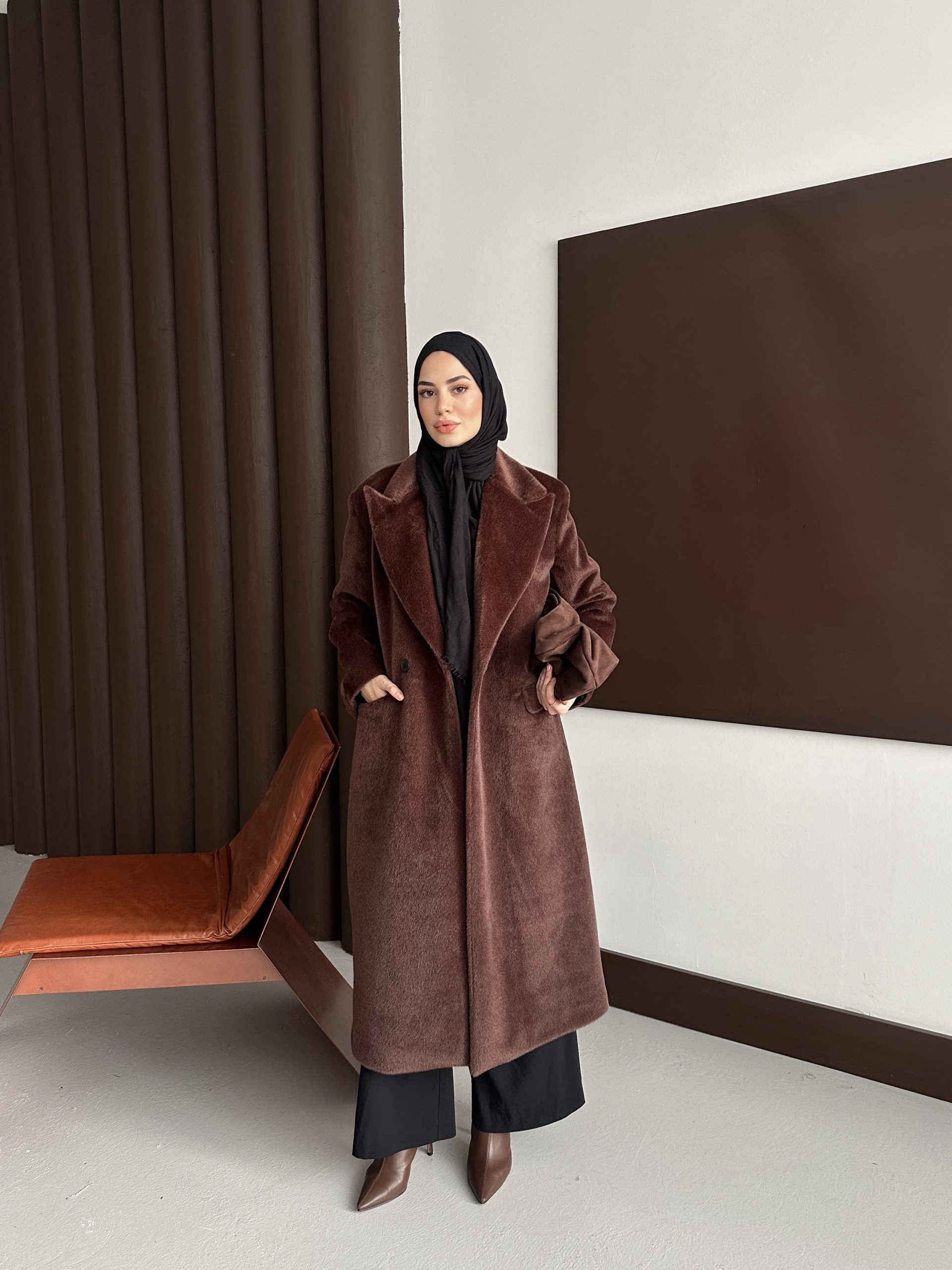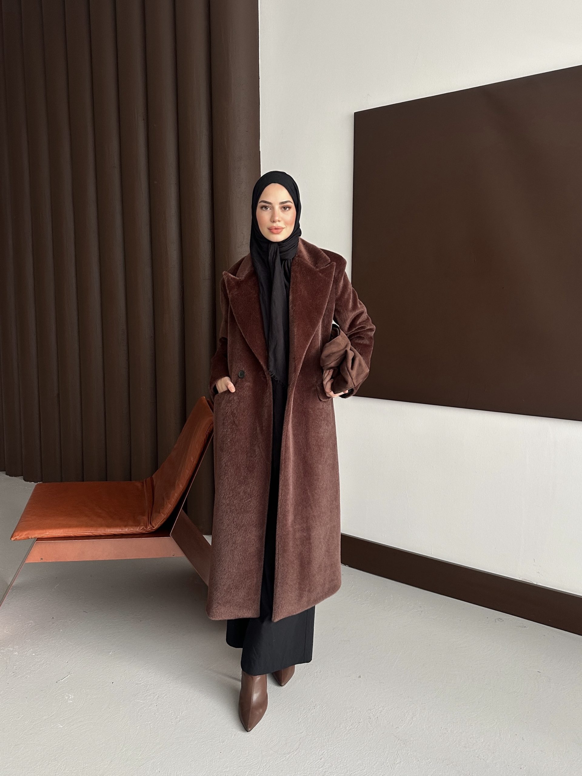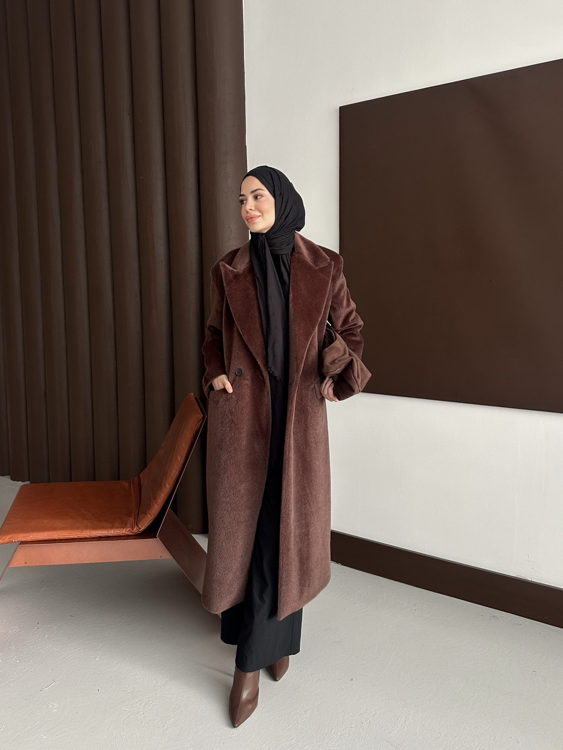 Premium Kürk Fox Kaban Acı Kahve